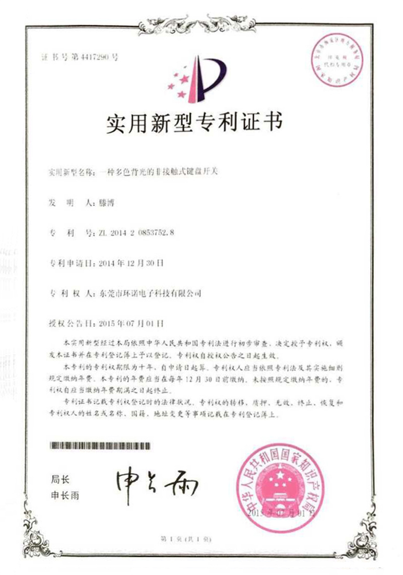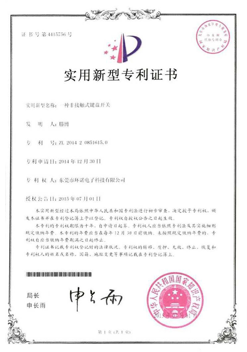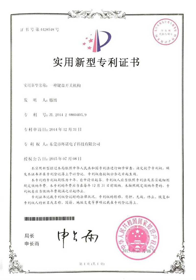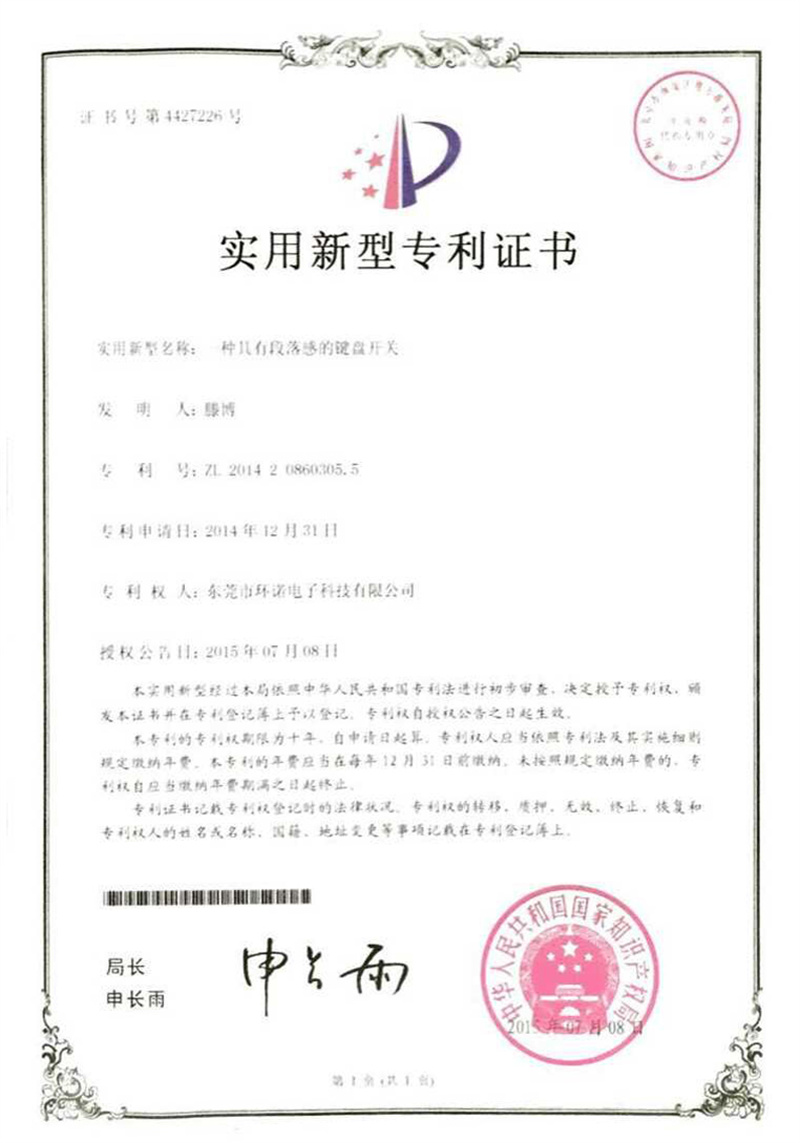 實(shí)用新型專(zhuān)利證書(shū)